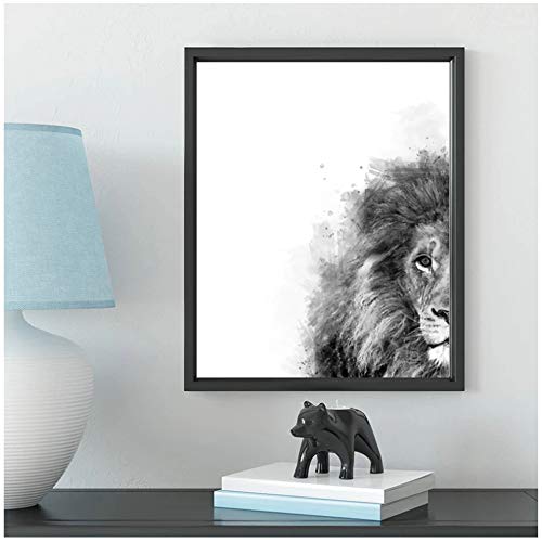 JIAYOUFC Leone e leonessa Animale Stampa su tela Nero Bianco Astratto Acquerello Poster Nursery Wall Art Picture Living Room Decor 50x70cm (20x28in) × 2