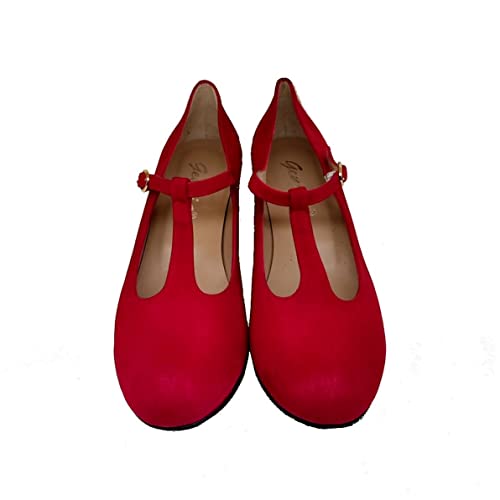 JICTORSIN - Mary Jane Scarpe Scarpe da Donna in Pelle Rosso - Chiusura con Fibbia - Tacco Medio 5 cm - Tendenza Tacchi da Ballo Latino - Pelle Camoscio Rosso - Rosso 35 EU