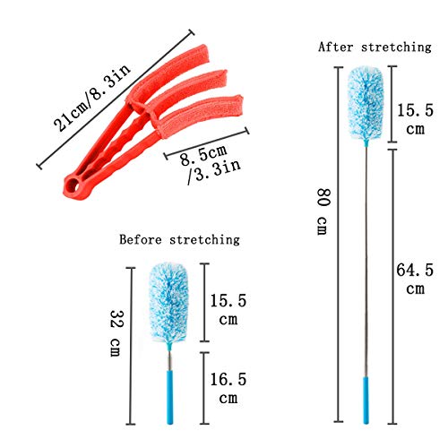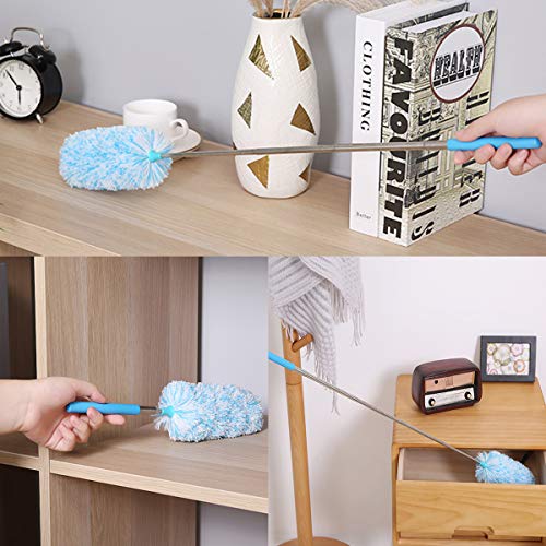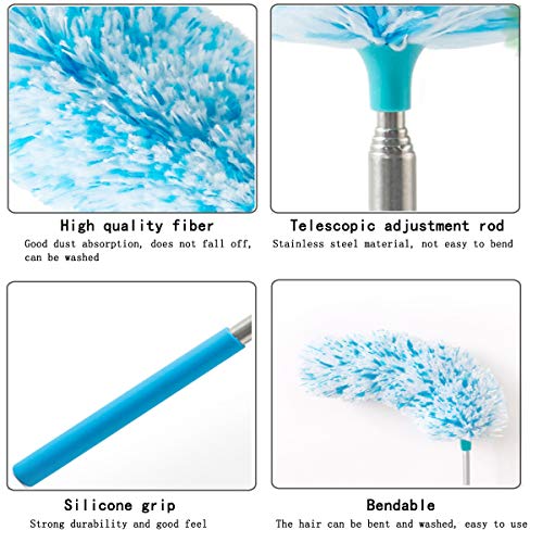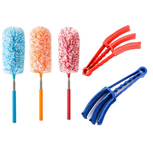 Jicyor Microfibra Spolverino Mano, 3pcs Lavabile Durevole con Palo Estensibile Piumino Spolver + 2pcs Removibili Riutilizzabili Persiana Microfibra per la Pulizia Ventilatori a Soffitto Alto Tende