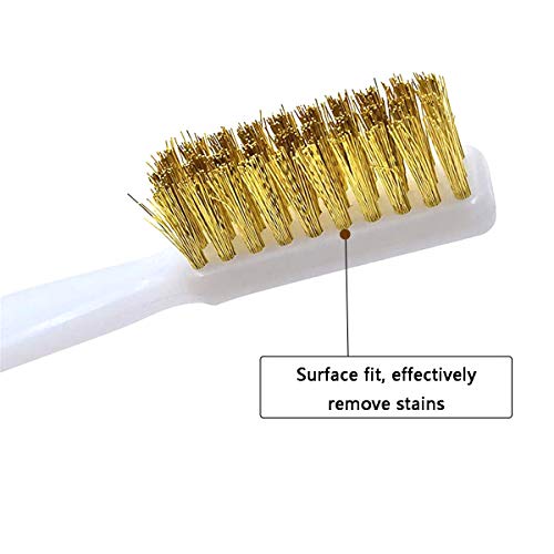 Buon materiale La mini spazzola metallica è realizzata in rame e manico in plastica di alta qualità, robusta e stente, può eliminare efcemente varie macchie ostinate senza lasciare graffi. Puoi riutilizzare.