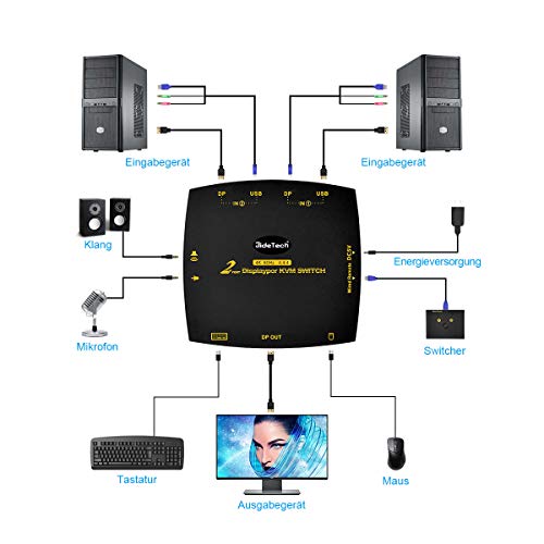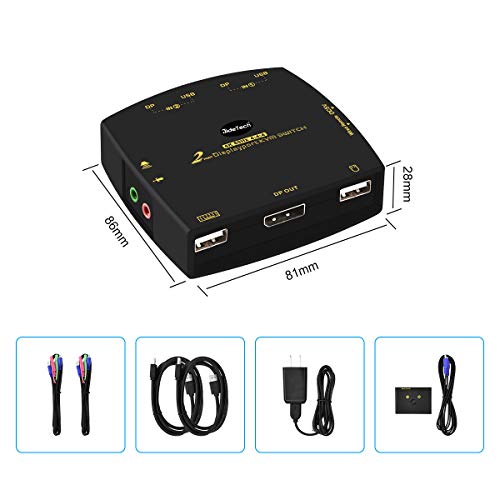 JideTech VC-JD-321DP KVM Switch 2 Displayport 4K @ 60Hz 4: 4: 4, switch KVM USB Supporta microfono audio, mouse e tastiera wireless, con 2 cavi DP e USB,