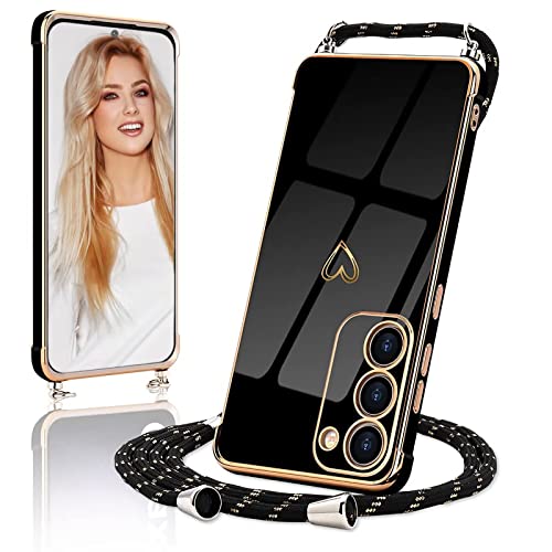 JIEBAOBEI Custodia per Samsung Galaxy S23 Plus 5G Cover con Cordino, Simpatico Modello di Cuore per Donne e Ragazze, Custodia in Morbida TPU con Tracolla, Nero