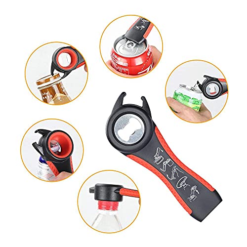 Jieddey Apriscatole a Mano,2 PCS Apri Barattoli e Apribottiglie Multi-Funzione Cavatappi Divertenti Cucina Apri Coperchio Apribile per Mani Deboli Anziani Artrite Anziani Nonna Regali 6 in 1+ 5 in-1
