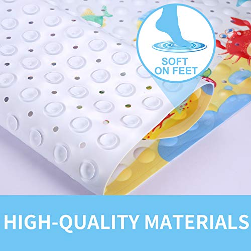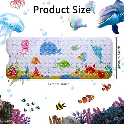 Jiehu Tappetino Vasca Antiscivolo Tappetino Bagno Extra Lunghi per Tappetini Antiscivolo per Doccia con Ventose, Drenaggio,Resistente alla Muffa con Stampa di Oceano a Colori Vivaci 100 x 40 cm