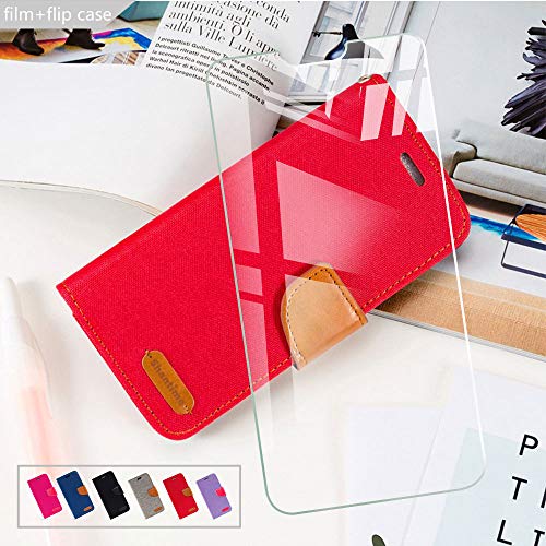 JIENI Cover per Alcatel 1B 2020 Custodia,Flip PU Pelle Classico Elegante Portafoglio Case Built-in Card Slot Custodie + Pellicola Protettiva in Vetro Temperato per (5.5") - Red