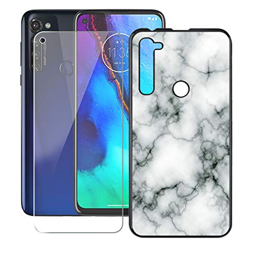 JIENI Custodia + Vetro Temperato per Motorola Moto G PRO (6.40"), Nero Silicone Cover Case Morbido Guscio TPU Bumper Glass Protector Film per Motorola Moto G PRO Custodie - Marmo