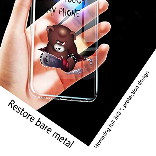 JIENI Custodia + Vetro Temperato Pellicola per Xiaomi Redmi Note 9S (6.67"), Trasparente Silicone Custodie Protettivo Cartoon Cover Case Morbido TPU Sottile Guscio Copertura - Orso Arrabbiato