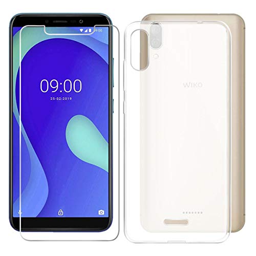 JIENI Custodia per Wiko Y80 Morbido TPU Semi-Trasparente Silicone Case Protettivo Gel Sottile Cover + Pellicola Protettiva in Vetro Temperato per Wiko Y80 (5.99") - Clear
