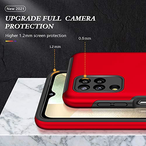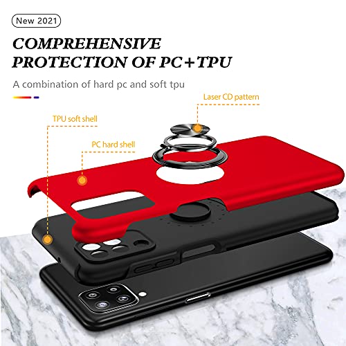 JIEZUIMEI Cover per Samsung Galaxy A12 / M12 Custodia con anello incorporato a 360°, Doppio Strato Antiurto PC + TPU Militare Silicone Bumper Custodia Case per Samsung Galaxy A12 / M12 Rosso