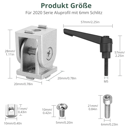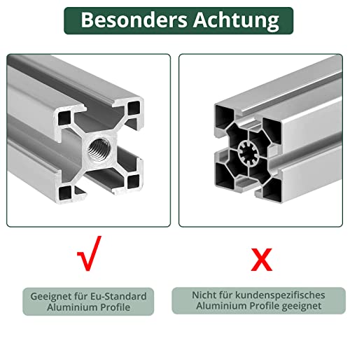 Campo di applicazione: adatto per il collegamento di 20 x 20 fessure, 6 mm, profilo extra in alluminio di Eu-Standard (nota: Adatto solo per profili in alluminio conformi alle norme europee. Non adatto per profili in alluminio personalizzati).