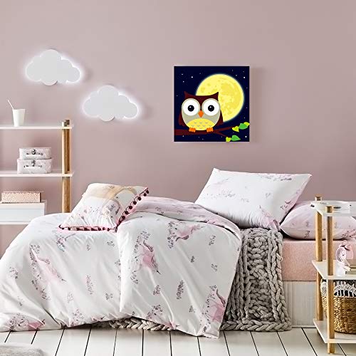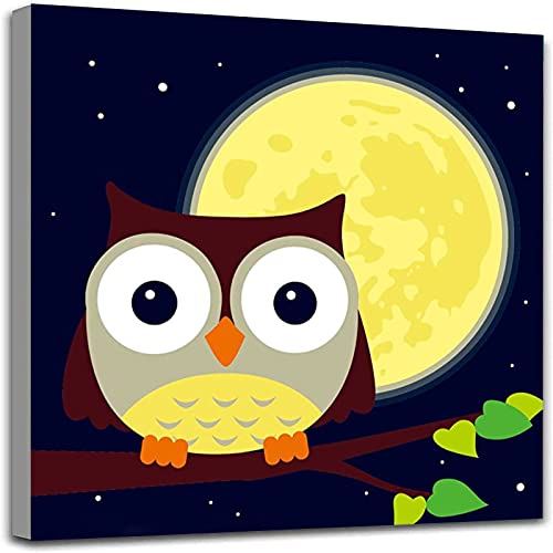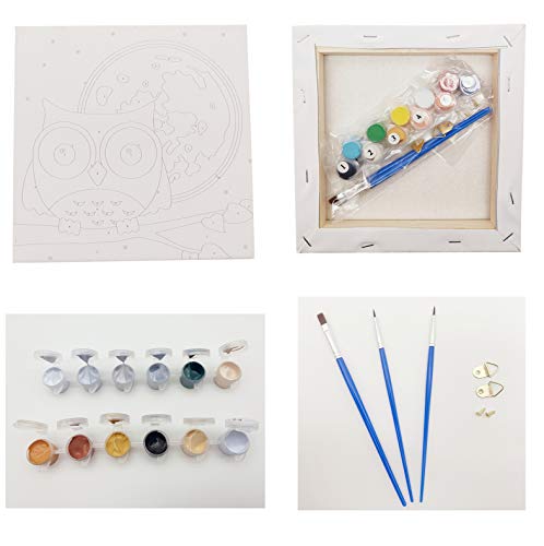 Jigspsyzh - Kit di pittura per bambini, con cornice, con numeri, per bambini dai 5 anni in su, tela montata su telaio in legno con pennelli e pitture, motivo: gufo, 20.3 x 20.3 cm