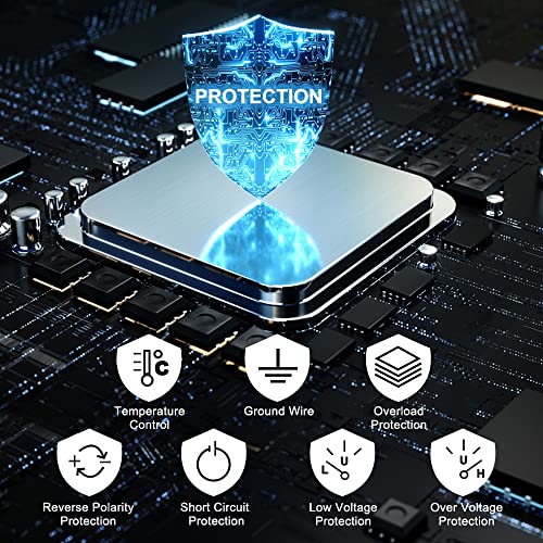 【7 Sistema di protezione completo】Protezione da sottotensione, protezione da sovratensione, protezione da sovraccarico, protezione da sovratemperatura, protezione da cortocircuito, terminale di terra CA, protezione del collegamento inverso. E c'è un sistema di raffreddamento a ventola (si avvia quando la temperatura supera i 45 ℃)