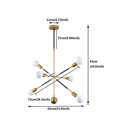 【Lampadario moderno in oro】 Diametro: 28,3 pollici/72 cm (NON includere lampadine), Altezza massima: 36,6 pollici/93 cm, Altezza della miscela: 26,8 pollici/68 cm, Altezza regolabile: 9,84 pollici/25 cm (asta di prolunga). Diametro canpony a soffitto: 4,72 pollici / 12 cm. Realizzato in metallo e ferro di alta qualità, il lampadario sputnik è durevole e resistente alla corrosione.