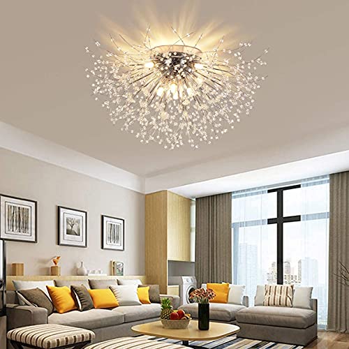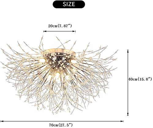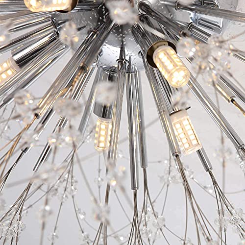 JIINOO Moderna Firework Lampadari di Cristallo, 8-luci Dente di Leone Lampada da Soffitto Montaggio a Filo di Cristallo Plafoniere di Illuminazione a Sospensione a LED (Senza Lampadina)