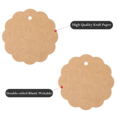 JijAcraft Etichette Rotonde in Carta Kraft 6x6cm, 100 pz Tag Regalo Cartoncino e Spago di Iuta, per l'artigianato Matrimoni Battesimo Natale (Marrone)