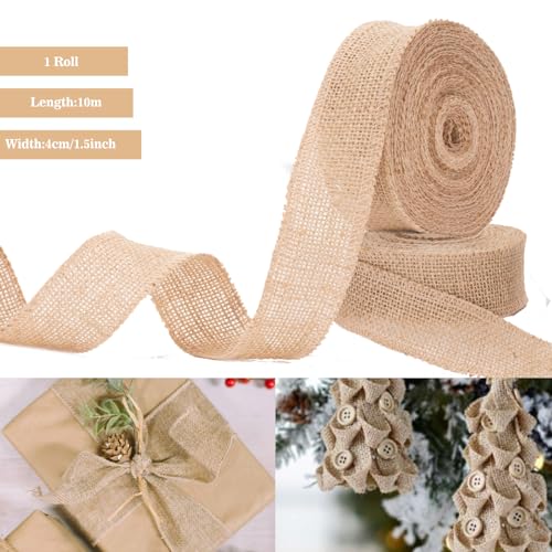 JijAcraft Nastro di iuta 4 cm di larghezza, 10 m Burlap Vintage nastro da regalo per artigianato, decorazione di nozze, Natale, ghirlanda autunnale