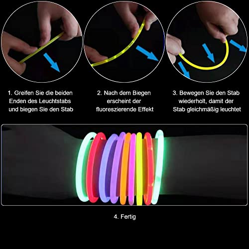 JIJI&CUI 164 Braccialetti Luminosi, Braccialetti Luminosi Fluorescenti Bambini Adulti, Glow Sticks Party con Connettori per Creare Bracciali e Ciondoli per Halloween, Pasqua, Comleanno Feste, Capodann