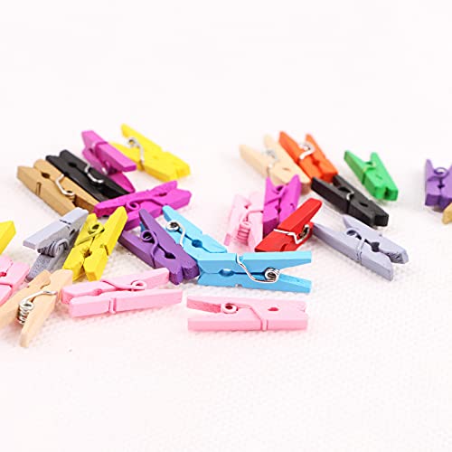 JIJK Mini mollette in legno, 50 pezzi colorati per foto, mollette per lavori di bricolage, per casa, scuola, arti e mestieri, clip per appendere piccoli biglietti decorativi