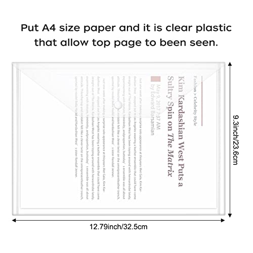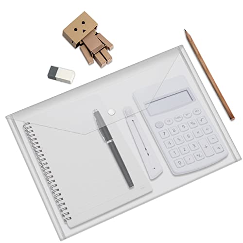 JIKIOU 30 portafogli in plastica, trasparente con chiusura a bottone, impermeabile, formato A4, per forniture scolastiche e per ufficio