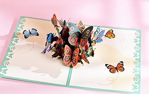 Jilibaba Biglietto di auguri pop-up 3D con farfalle, con busta, per Natale, compleanno, compleanno, Capodanno, matrimonio, anniversario, amici, famiglia, lei, lui