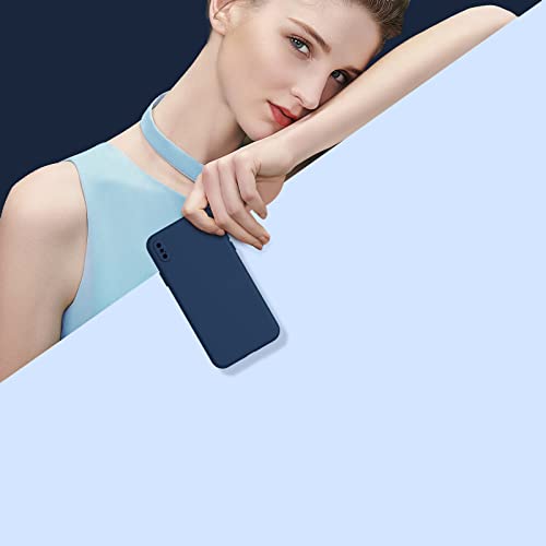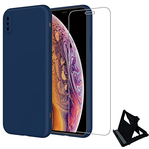 Jilicsan Cover per iPhone X/iPhone Xs(5,8"), con 1 Pellicola Vetro Temperato e 1 Porta Cellulare, Custodia Morbida in Silicone Liquido con Fodera in Microfibra, Case Ultrasottile Antiurto -Blu Scuro