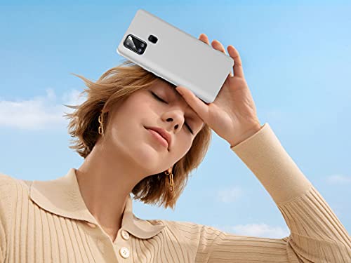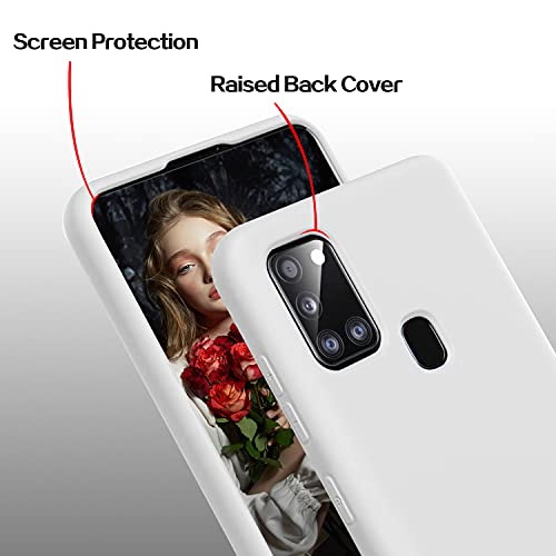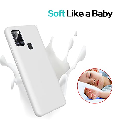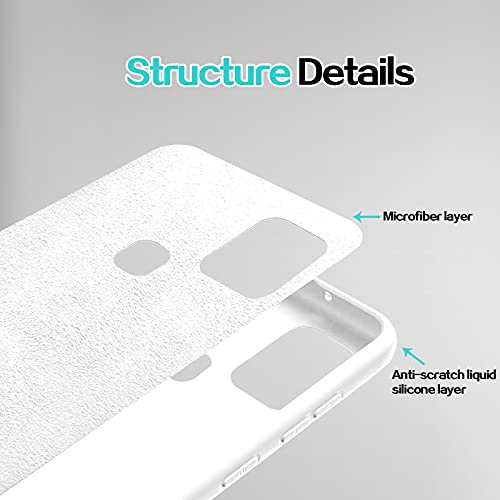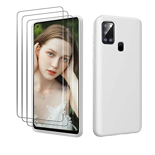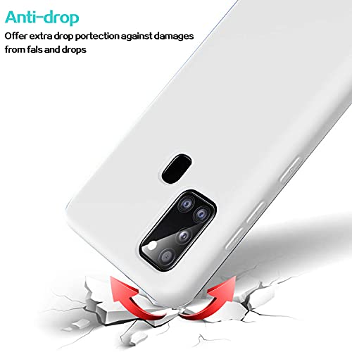 Jilicsan Cover per Samsung Galaxy A21s, con 3 Pack Pellicola Vetro Temperato, Custodia Morbida in Silicone Liquido con Fodera in Microfibra, Case Ultrasottile Antiurto -Bianco Antico