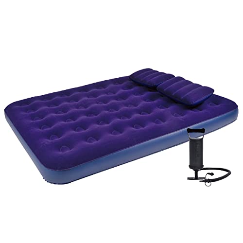 Jilong Queen Size CB Set - Letto Matrimoniale Gonfiabile King Size con 2 Cuscini Separati e Pompa a Mano, Superficie in Velour, 203x152x22cm