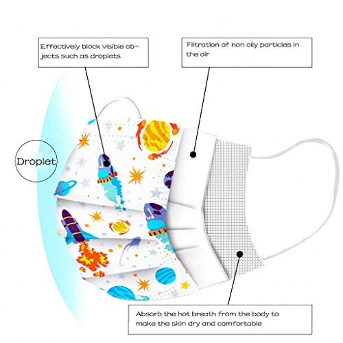 Jimackey Bambini 50 Pezzi Colorate Tessuto Viso Cotone Stampa Antipolvere Visiera Bocca Faccia USA e Getta 3 Strati Adatto per 3 6 9 12 Anni Ragazze Ragazzi (J)