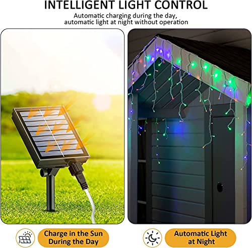 JIMACRO Luci Decorative da Esterno Solari, 8M 264 LED Stringa Luci Esterno, 44Pcs 0.7M+0.5M Luci Natale Esterno Cascata, Impermeabile Decorative Lucine, 8 Modalità Tenda Luminosa Esterno Solare