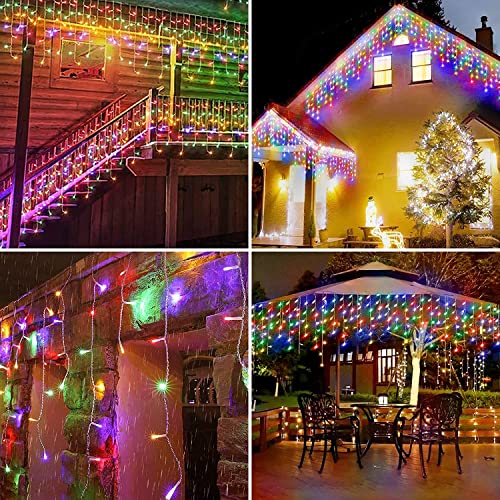 Luci a Stringa per Tende da Esterno: Lunghezza totale 8 m, 44 mazzi di luci a stringa da 0,5 m + 0,7 m per lo sfondo. Distanza tra le gocce di 13,6 cm. Realizzato in resistente PVC e materiale in rame con 264 LED luminosi brillanti, progettato per decorare il tuo cortile, finestre, pareti, cornicioni, recinzioni, perfetto per feste all'aperto al coperto / vacanze / festival / decorazioni natalizie.