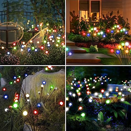 【2 Modalità di Illuminazione】 Confezione da 2 luci solari da giardino decorative con 10 globi bianchi, bianco caldo/lampeggiante colorato e illuminazione fissa opzionale. Ruota l'interruttore su "ON" per la modalità "Steady on", scorri su "FLASH" per la modalità "Flash", fantastico per creare una bellissima immagine di un gruppo di lucciole che volano e ballano allegramente nel tuo giardino, patio o prato.