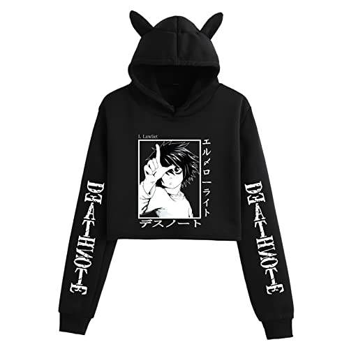 Anime Death Note L Lawliet felpa con cappuccio con orecchie di gatto stampata top corto