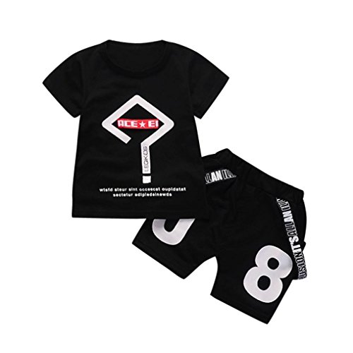 Jimmackey 2Pcs Bambino Ragazzo T-Shirt Applique Lettera Stampa Cime + Numero Pantaloncini Neonato Abiti Set (Nero, 12 Mesi)