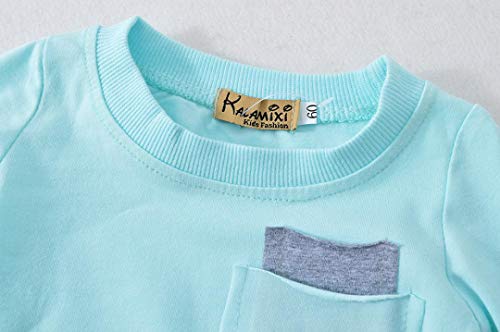 Jimmackey 2pcs Splice Completini, Bambino Tasca T-Shirt Camicia Cime + Ginocchia Applique Pantaloni Neonato Abiti Set (Blu, 18 Mesi)