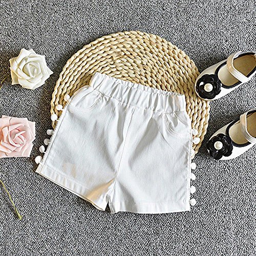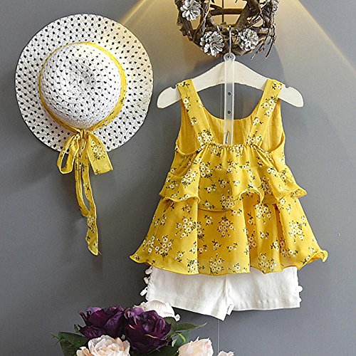 Jimmackey 3pcs Neonata Bambine Abiti Floreali Chiffon Gilet T-Shirt Cime + Tassle Pantaloncini+ Cappello Set (Giallo, 4 Anni)