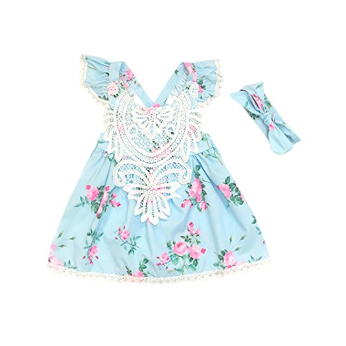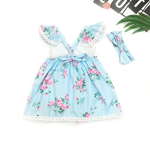 Jimmackey Bambini Bambine Pizzo Halter Bende Vestito Principessa Tutu Volant Stampe Floreale Abito & Archetto (Blu, 2 Anni)