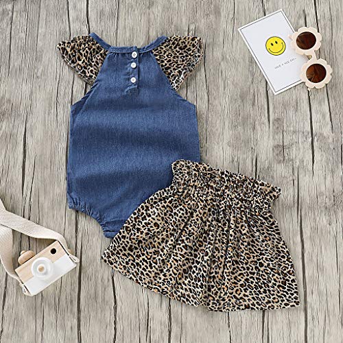 Jimmackey Neonata Bambine Falbala Tutine Denim Pagliaccetto + Stampa Leopardo Gonne Estate Vestiti Set