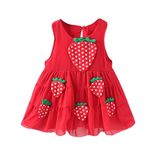 Jimmackey Neonata Bambine Fragola Appliques Gilet Vestito Principessa Chiffon Tutu Abito Set (Rosso, 6 Mesi)