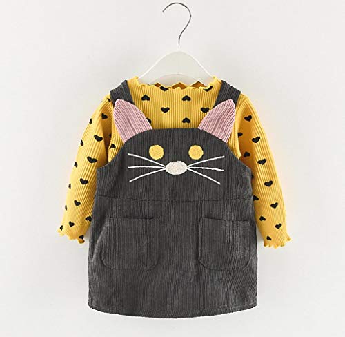 Jimmackey Neonata Bowknot Fumetto Gatto Stampa Vestito Manica Lunga Principessa Tutu Abito Partito Dress (Giallo #1, 18-24 Mesi)