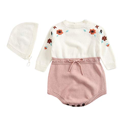 Jimmackey Neonata O-Collar Maglia Body Tuta Manica Lunga Fiore Nappa Crochet Pagliaccetto + Cappello Bambina Abiti Set