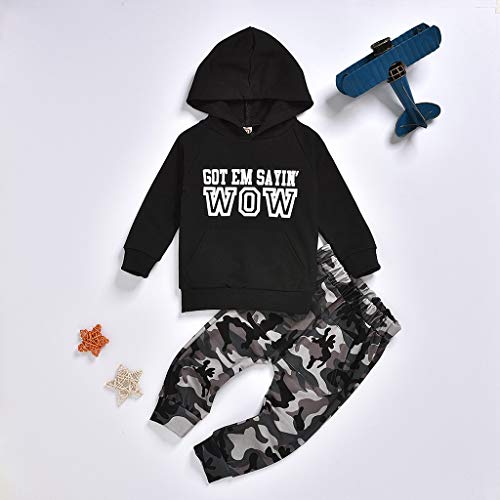 Jimmackey Neonato Striscia Incappucciato Pagliaccetto Manica Lunga Tutine Body + Camouflage Pantaloni Bambino Completini (Nero #2, 4-5 Anni)