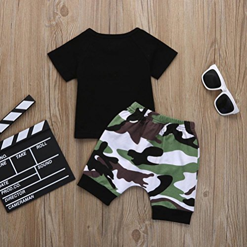 Jimmackey Neonato Unisex Camicia Stampa Lettera T Shirt Cime + Camuffamento Pantaloncini Abiti Set (Nero, 5 Anni)