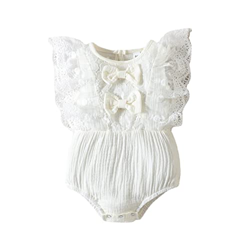 Jimmackey Pagliaccetto Bambine Pizzo Floreale Vestiti del Neonata Manica Corta Abiti Body da Un Pezzo con Fascia Outfits Tutu Schienale Abito Estivi