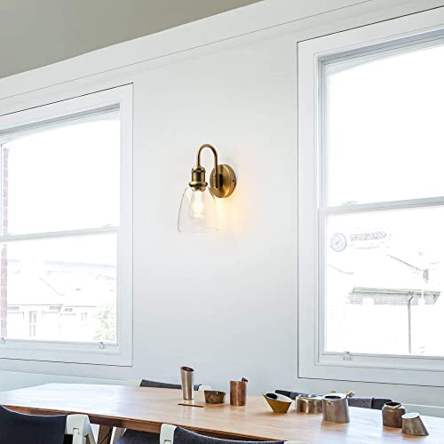 JIMUBEAM 1-luce Lampada da parete a collo d'oca vintage con paralume in vetro trasparente Cloche, applique da parete interno industriale per bagno soggiorno camera da letto sopra lavello cucina