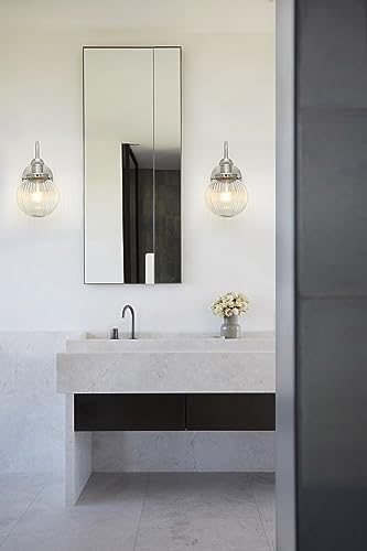 JIMUBEAM Applique industriale vintage a collo d'oca a 1 luce con paralume rotondo a coste in vetro trasparente globo, Lampada da parete interna per camera da letto Soggiorno Bagno Vanità