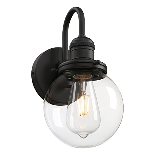 JIMUBEAM applique da parete interno vintage industriale a collo d'oca 1-luce con 5,9 pollici rotondo in vetro trasparente paralume
