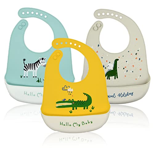 JinBei Bavaglino Silicone Neonato 3 Pezzi Lavabile Impermeabili Raccoglipappa Pappa Svezzamento Bavaglini Morbido con Tasca Regolabili Senza BPA Morbido Facile da Pulire Bavette per Bambini Bimbo