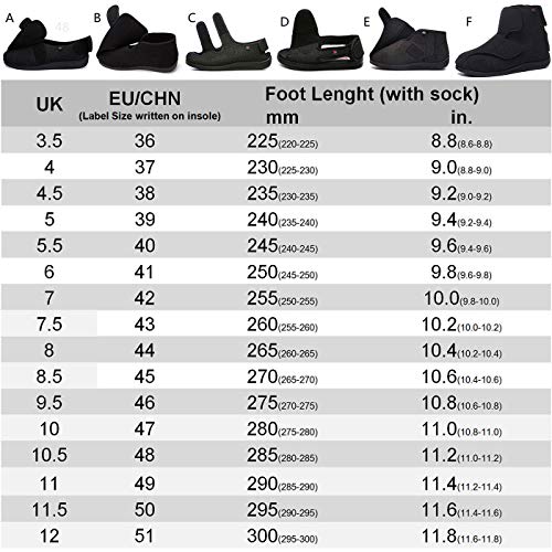 JINBEILE Donne Uomini X-Large Scarpe Regolabile Velcro Gonfiabile Piede Diabetico Stivali Odeme Uomini Vecchi Unisex Grandi Dimensioni, A Printemps Été Noir, 48 EU X-Larga