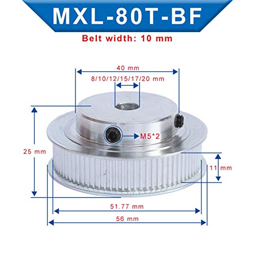 JINchao-Puleggia distribuzione PULLEY TIMING MXL-80T 80 denti, taglia 8/10 / 12/15/17 / 20mm, slot slot puleggia larghezza 11mm, partita con larghezza cinghia da 10 mm MXL, 1 pz Precisione di posizion