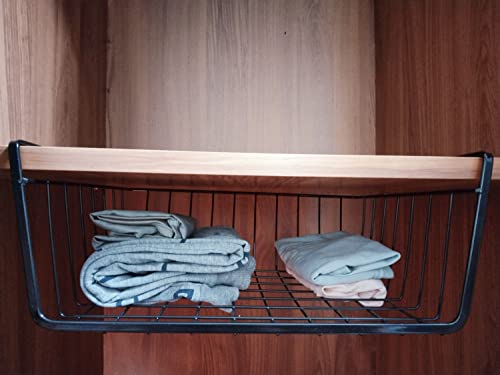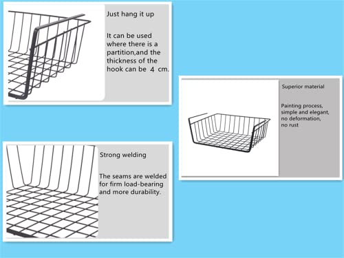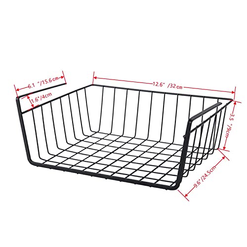 Jinchelle Cesto Portaoggetti Sospensione, 2 pezzi Cestino Portaoggetti Sotto Scaffale, Multifunzione Sotto Cesto Filo Metallico, Adatto Per Ufficio, Stoviglie, Armadietto, Bagno (Nero)